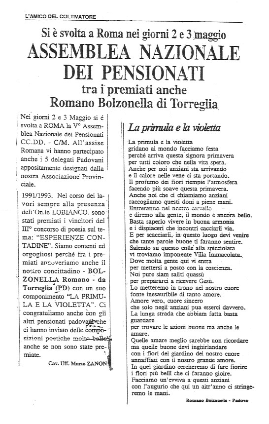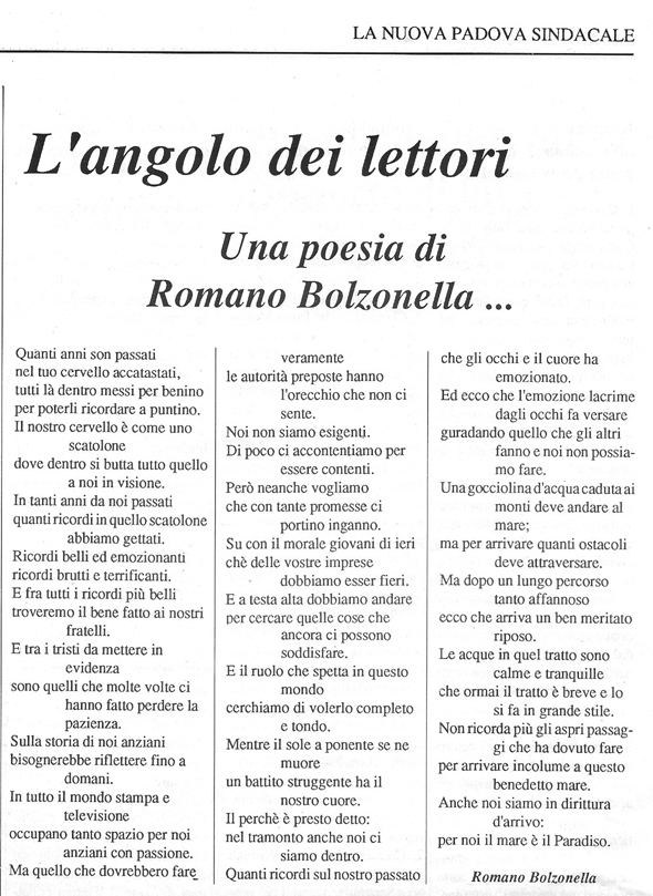 Nella sezione "L'angolo dei lettori": Una poesia di Romano Bolzonella ...